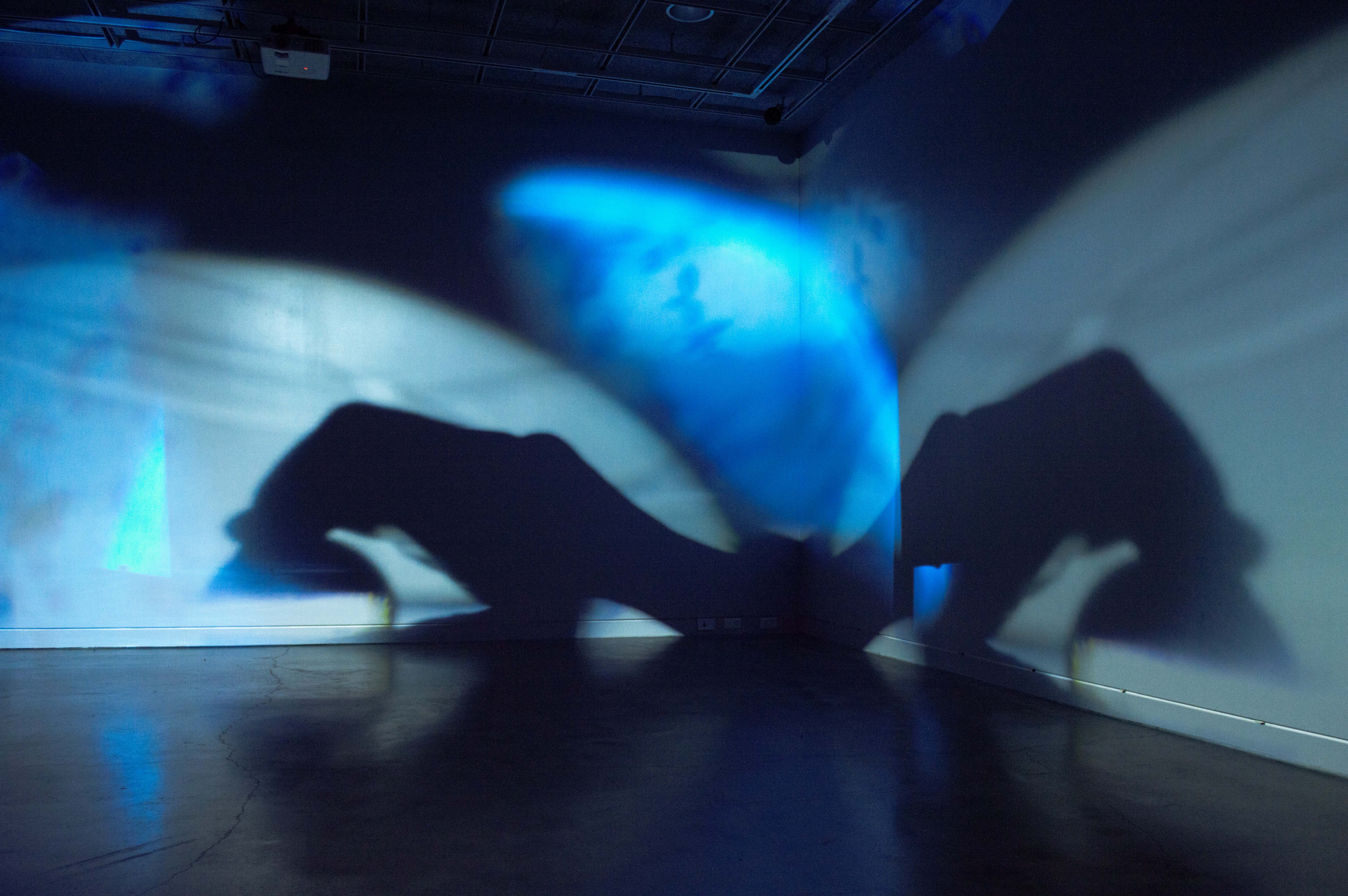 is a performance of reprojection which was installed as a three-channel piece for my thesis exhibition (images below).